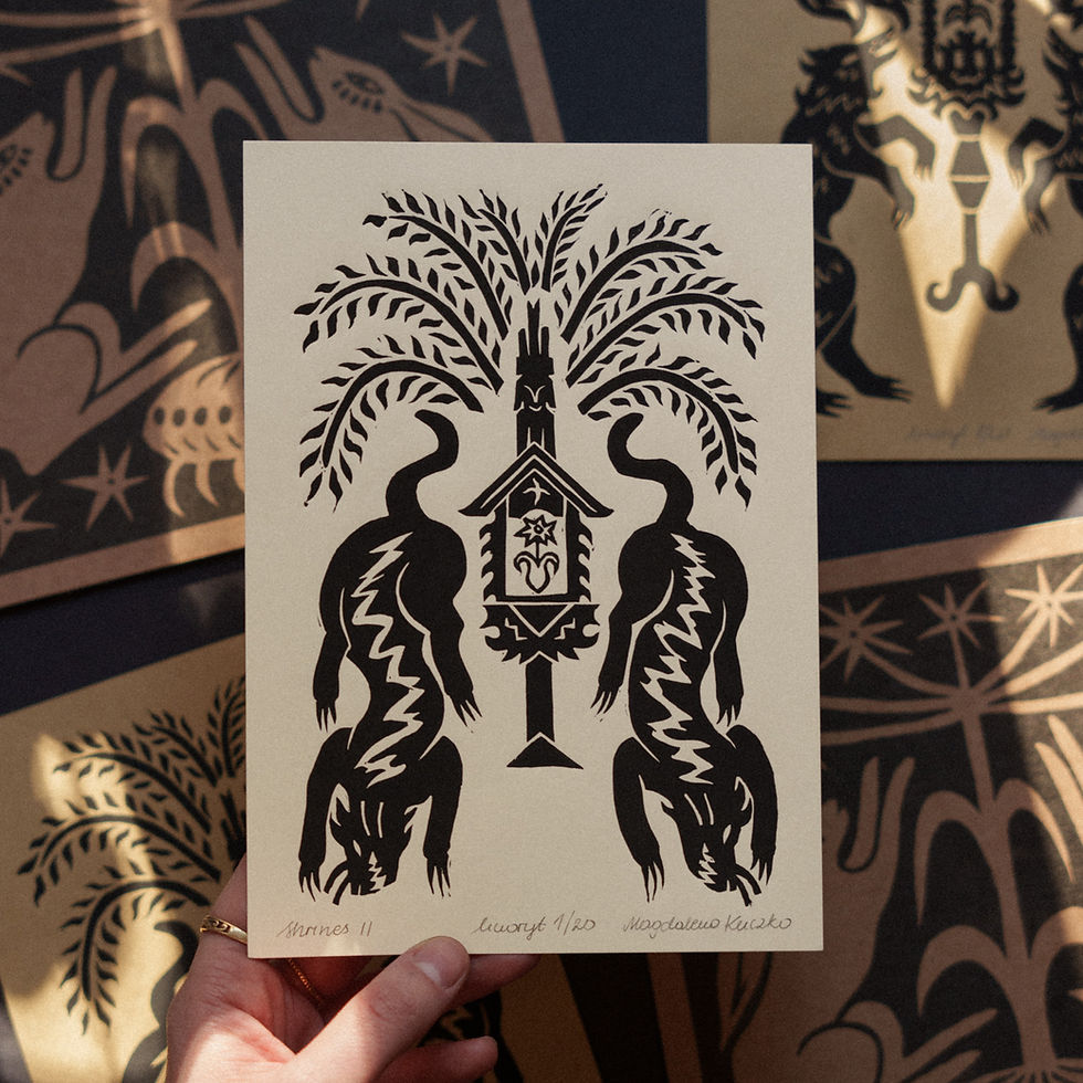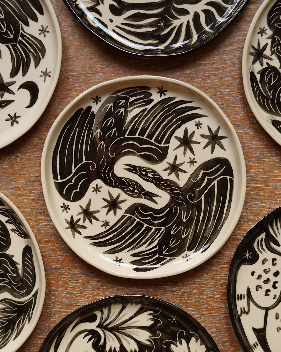 Ręcznie lepiony i malowany, unikatowy talerz z autorską ilustracją.
